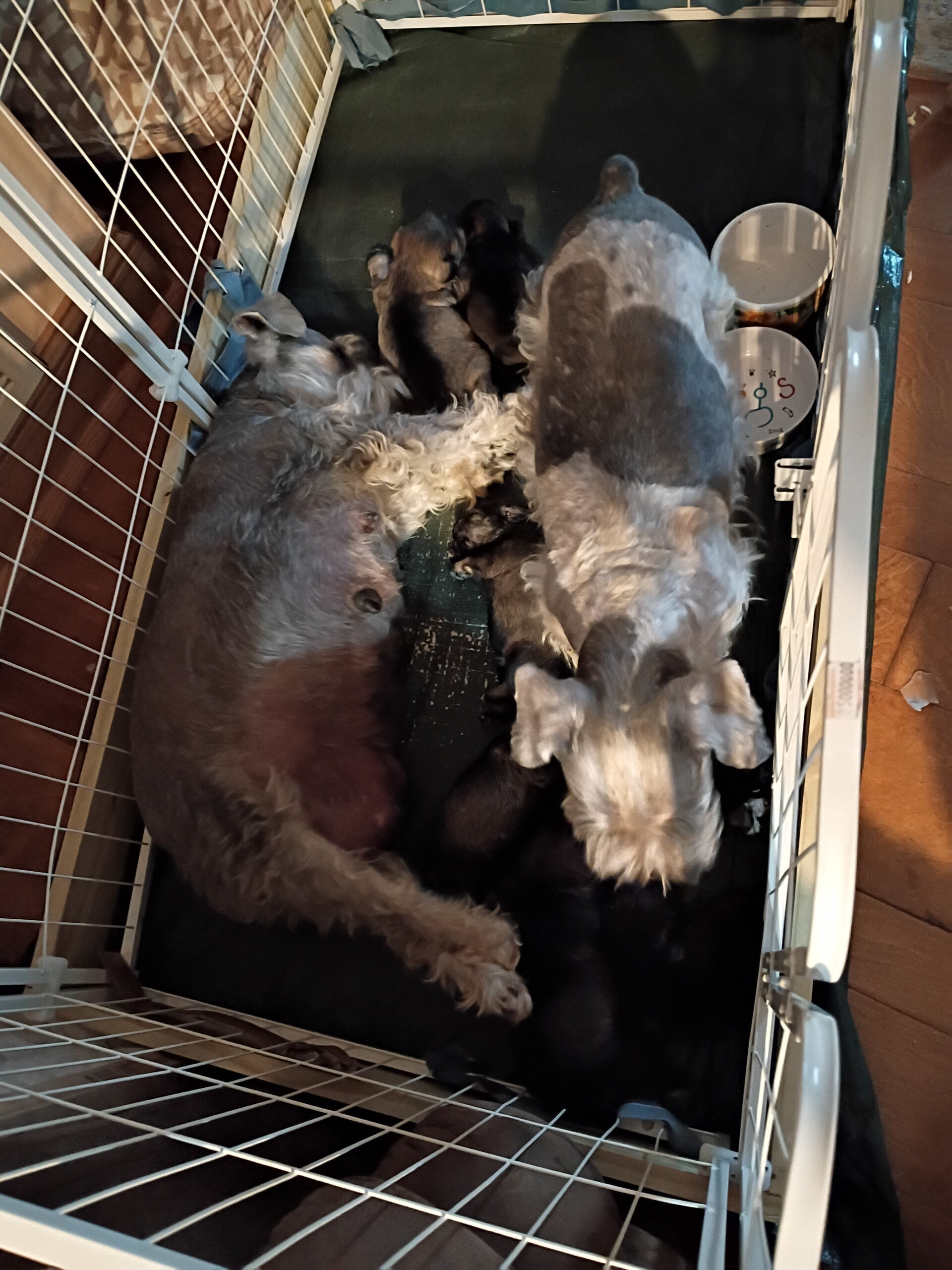 Pearl Heart, another of our cherished female schnauzers, also born on January 22, 2021, weighs in at 14lbs. You can find out more at WWW.Schnauzersbysammy.com.
